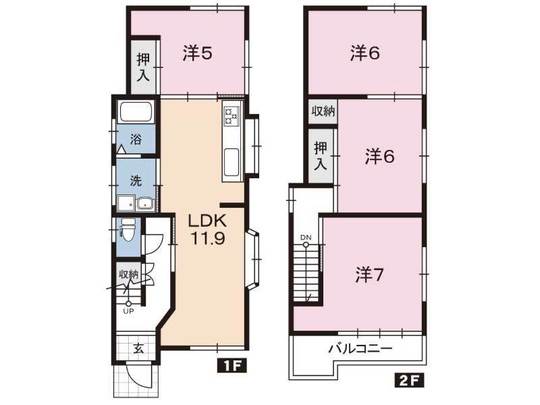 | 間取り | 4LDK/1階 11.9LDK・5洋/2階 6洋・6洋・7洋 |