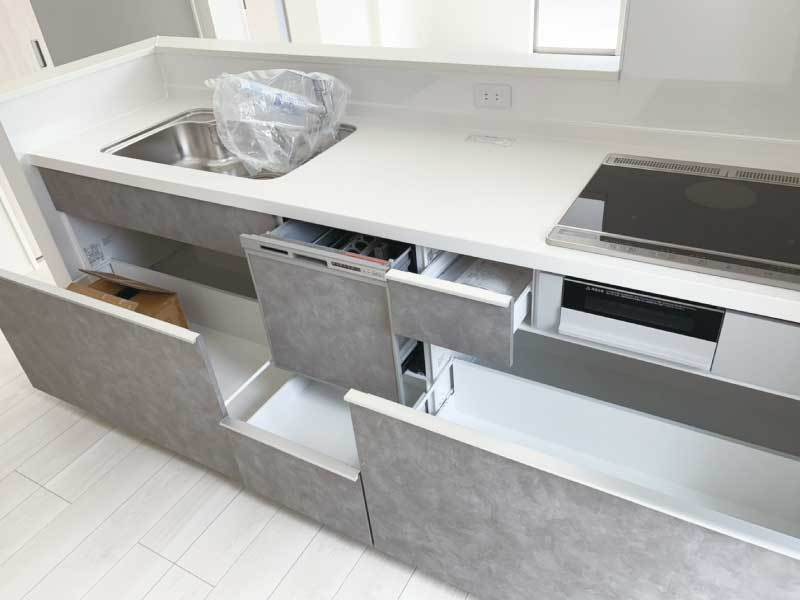 | 設備 | 浄化槽・上水道・対面式キッチン・IHコンロ・水なし両面焼きグリル・食器洗い乾燥機・カウンタートップ人造大理石・浄水器内蔵型水栓・キッチン手元コンセント・断熱浴槽・浴室ポップアップ排水栓・UBエコアクアシャワー・UBマグネットシェルフ・3面鏡洗面化粧台・洗面エコハンドル水栓・浴室換気暖房乾燥機・温水洗浄便座トイレ・節水型トイレ・TVモニター付インターホン・インナーバルコニー・24H換気・外部コンセント・外部水栓・EV充電器・全室居室収納・床下収納・WIC・耐震等級3相当・一次エネルギー消費等級6・断熱等性能等級5・ZEH仕様・オール電化仕様・Low-eガラス窓 |