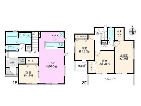 | 間取り | 4LDK/1階 16LDK・4.5洋/2階 7.5洋・5.25洋・5.25洋 |