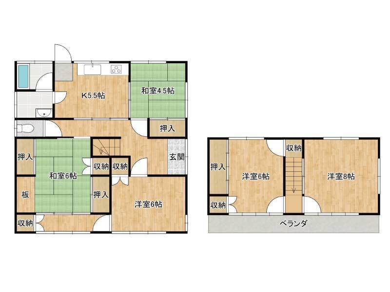 | 間取り | 5K/1階 6洋・4.5和・6和・5.5K/2階 6洋・8洋 |