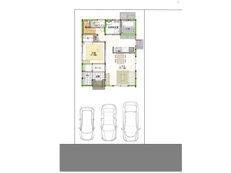 | 間取り | 4LDK/1階 15.1LDK・4.5洋/2階 6.6洋・5.1洋・7.7洋 |