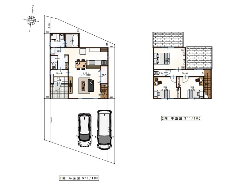 | 間取り | 3LDK/1階 17.25LDK / 2階 6洋・4.87洋・4.87洋 |