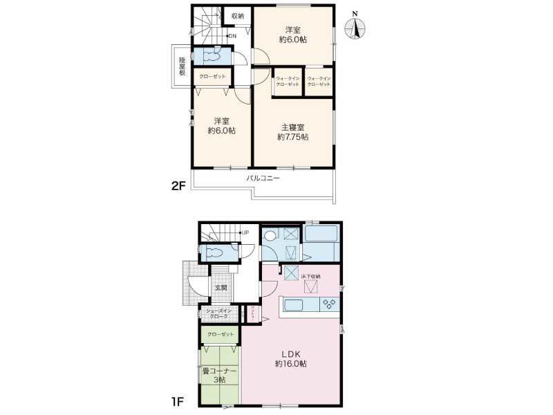 | 間取り | 3LDK/1階 16LDK・3畳コーナー / 2階 6洋・6洋・7.75洋 |