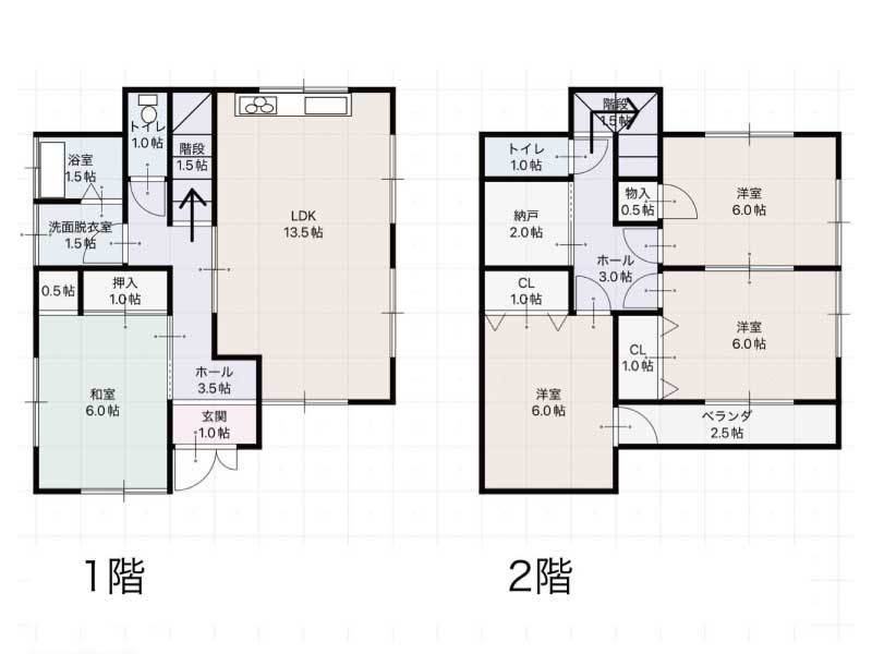 | 間取り | 4SLDK/1階 13LDK・6和/2階 6和・6洋・6洋・納戸 |